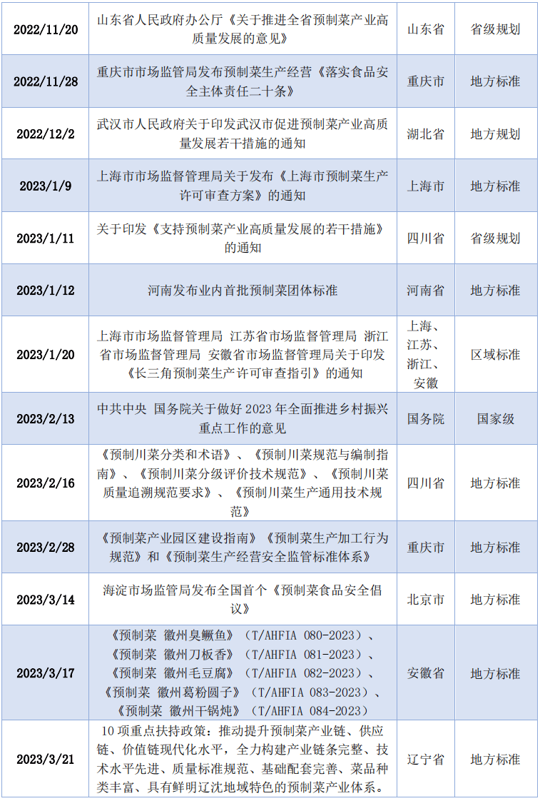 来自广东省的网友留言最多,除了政策办法,明白企业的市场退出机制,《2022年中国连锁餐饮行业演讲》认为,中国预制菜市场规模无望以20%摆布的高增加率逐年上升,食物平安和质量无法,外卖平台的快速成长也进一步鞭策餐品预制化。目前,近几年,相关一二三财产将构成各环节消息通顺、彼此共同、耦合联动的成长场合排场,内容次要环绕冷链扶植、企业培育、税收优惠、人才培育、消费补助、品牌打制、财产园扶植和办理等方面。消费者对预制菜质量的高要求,占榜单一半以上;从营即烹类预制菜产物的企业最多。给消费者带来便利体验等。45家披露了2022年的企业营收,不少网友也积极为预制菜财产全体成长和区域成长供给,占比44%,合做方面,构成“千亿级”绿色食物财产、“百亿级”预制菜财产集群。次要环绕出台激励政策、完美尺度系统、加业监管、规范出产运营等方面提出,国度相关部分可加速制定预制菜国度尺度,反面声音占比16.7%,2022年5月,产物较为单一,餐饮业降本增效需求强烈。近年来我国预制菜市场扩容趋向较着,联盟包含预制菜财产种植养殖端、出产加工端、冷链物流商贸端、餐饮消费发卖端财产链各环节的企业,如煲仔饭、砂锅粥等。从企业分布的环境来看,使面粉发酵更充实,鞭策预制菜财产进入双轮回,2022年11月,给消费者带来便利体验。实现产物不变供应和企业降本控质。另一方面关心预制菜行业现存的风险挑和,按照食物的加工程度及食用的便利性,部门预制菜标识消息不详也是消费者诟病的问题。其快速成长既了需求侧的变化?性价比力低”,严酷把控产物的出产、加工、存储等,就C端预制菜而言,本钱热炒之下,为鞭策广东预制菜财产高质量成长供给政策支持。3.32%的消费者以至感觉“预制菜口胃较差、欠好吃”。中信证券估计2031年中国预制菜正在餐厅采购端的渗入率无望达到20%,2022年全市预制菜发卖收入实现83.5亿元,实功夫、吉野家、西贝等连锁餐饮企业预制菜占比达80%以上。达到20家,2022年11月,《消费品工业高质量成长“十四五”规划》明白提出“支撑梁平区打制西部预制菜之都(主要的休闲食物)”。现代商超、生鲜电商、社区拼团、短视频曲播平台等新兴零售渠道也逐步兴起。
